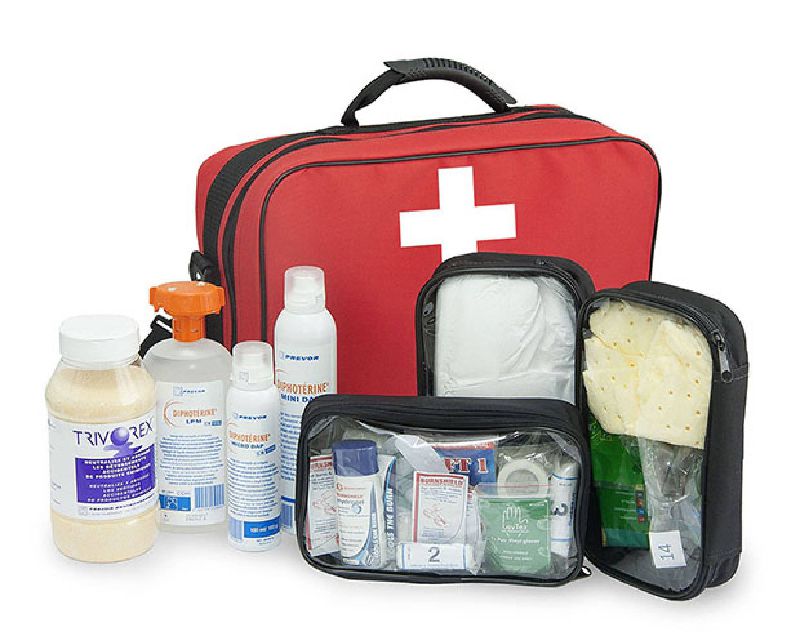 Kit de primeros auxilios, quemaduras térmicas y químicas, y derrames ambientales, incluido en una maleta de 3 estuches, ideal para emergencias industriales.