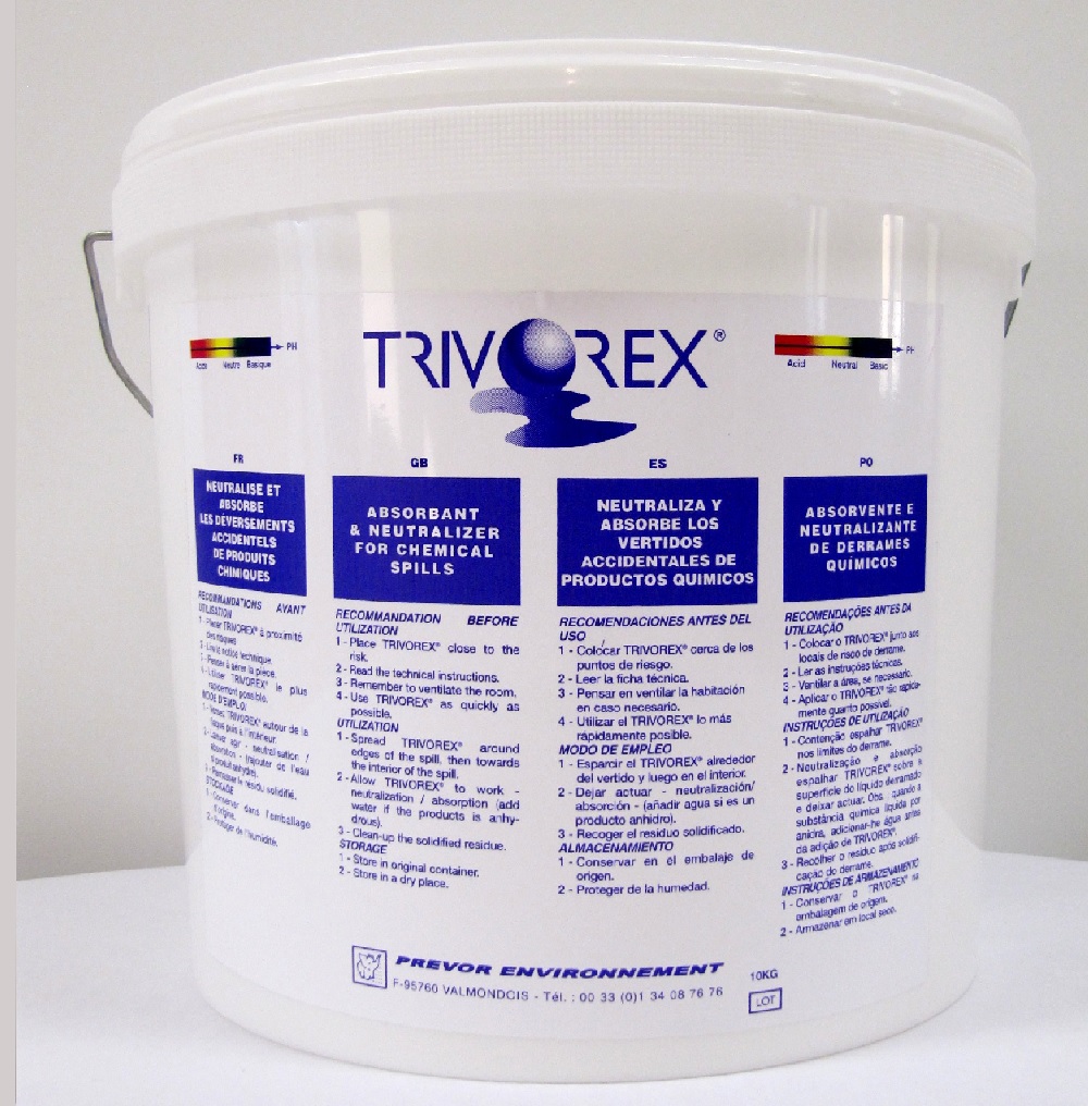 Trivorex polvo neutralizante absorbente universal de 4 kg, diseñado para neutralizar y absorber una amplia gama de químicos peligrosos.