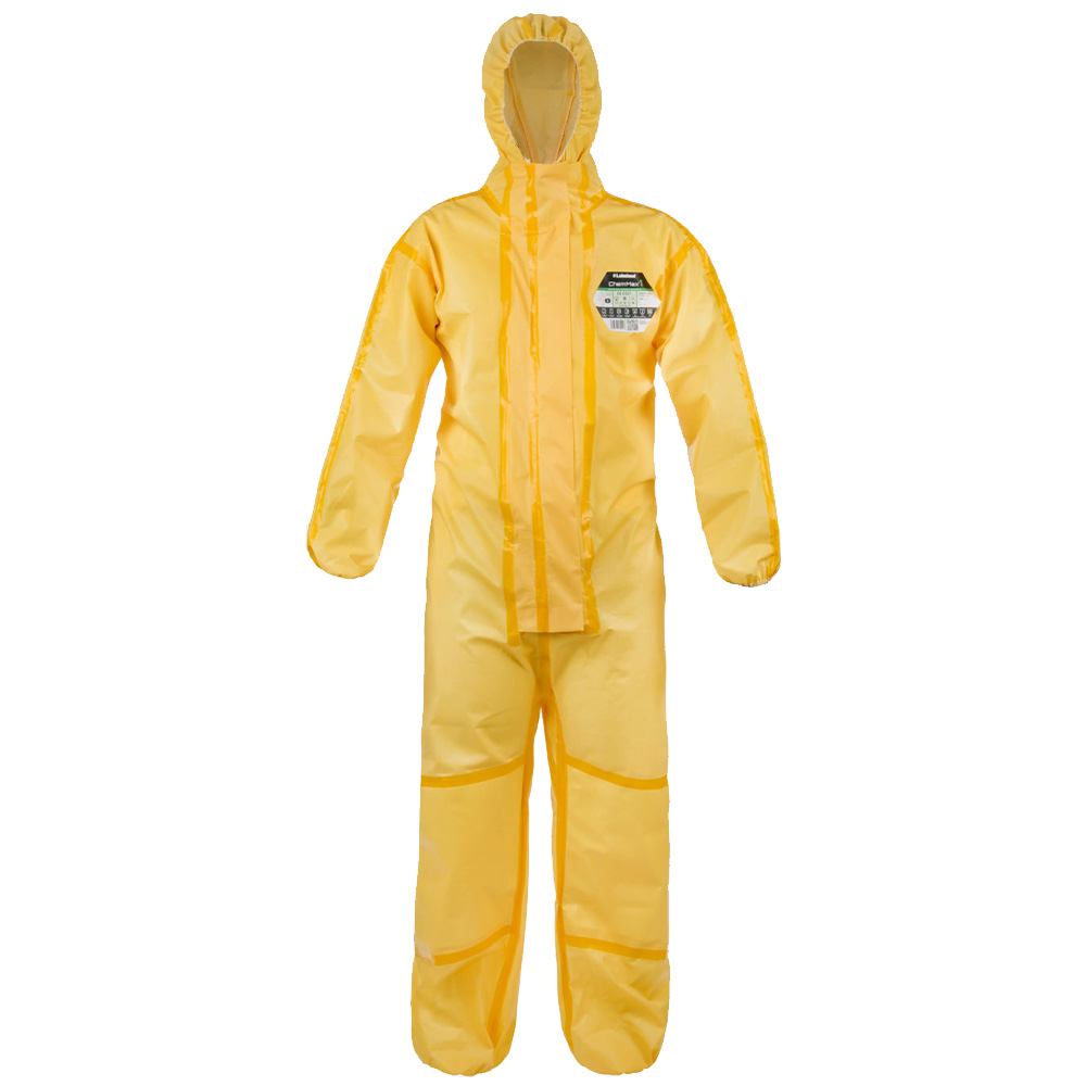 Traje de protección química Chemmex, fabricado por Lakeland, ideal para proteger al usuario en entornos con sustancias químicas peligrosas, sin botas.